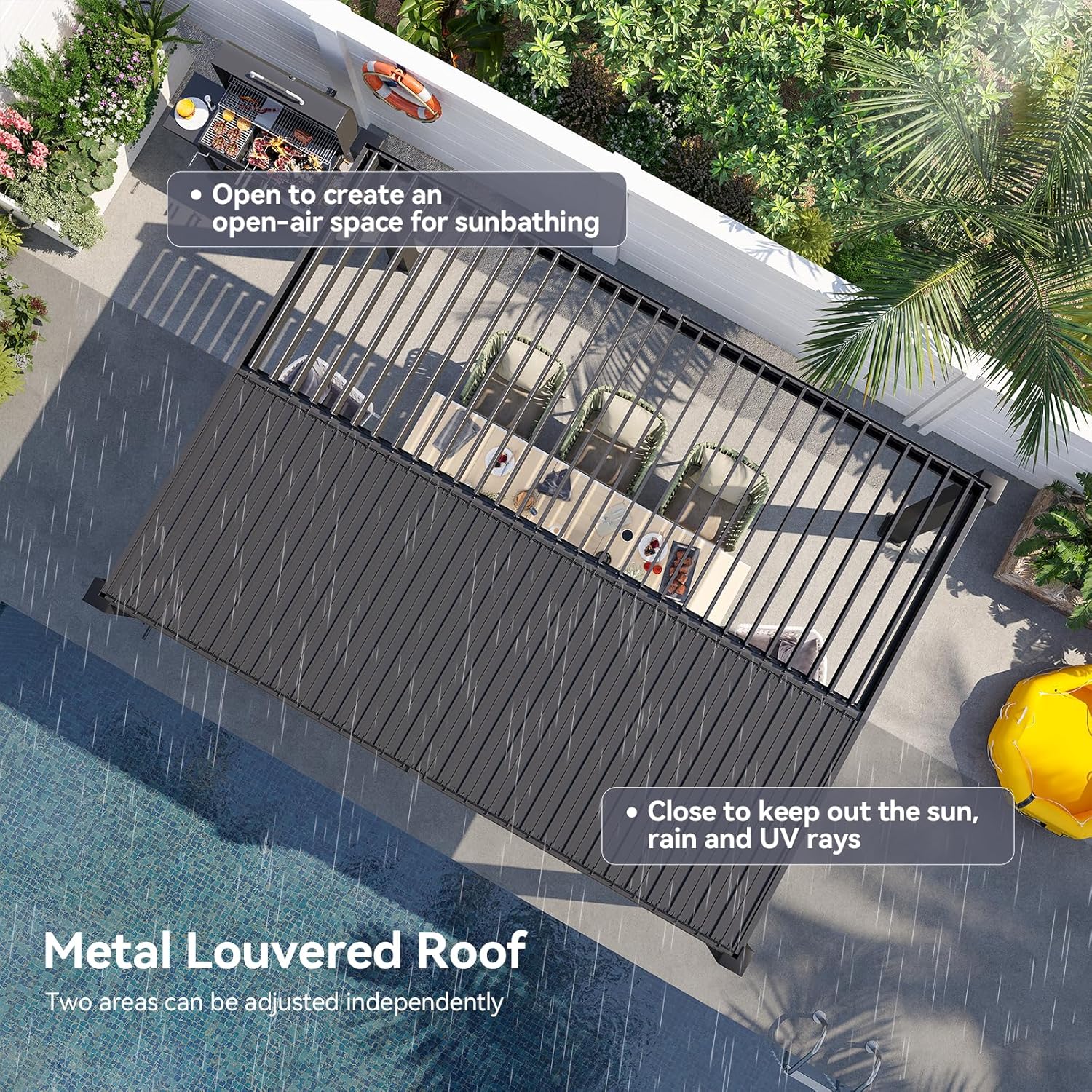 Aoxun Louvered Pergola 10' x 13' 96S Outdoor Metal Pergola with Adjustable Top for Decks, Gardens and Backyards, Easy Assembly via Structural Patent, Gray