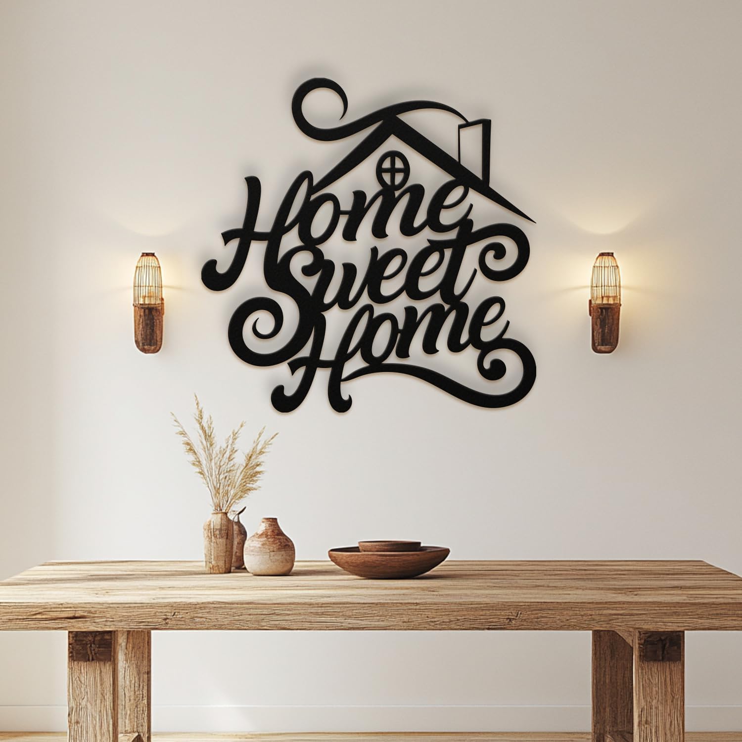 "HOME SWEET HOME" IN STYLISH RELIEF: This iconic phrase is artfully sculpted in a graceful cursive design, creating an inviting ambiance that instantly makes any space feel like home.